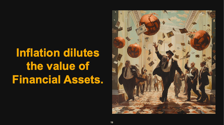 The chart above illustrates the useful life of financial assets by showing how long it takes for them to lose 99.9% of their value. For instance, the Argentine Peso takes just 2 years, the Turkish Lira 3 years, the US Dollar 14 years, Hedge Funds 25 years, US Treasury Bonds 30 years, and Mutual Funds 100 years. This rapid devaluation is primarily driven by currency debasement by central banks, influenced by regulatory and political factors.