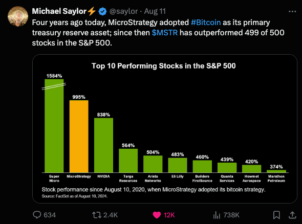 Since MicroStrategy adopted the Bitcoin standard on August 10, 2020, Bitcoin has consistently outperformed all other asset classes. The company’s strategic decision to convert significant portions of its treasury into Bitcoin has proven to be highly advantageous, as Bitcoin’s value has surged dramatically compared to traditional assets like stocks, bonds, and real estate. This move not only protected MicroStrategy’s capital from inflation but also significantly enhanced its overall financial position, demonstrating the power and potential of Bitcoin as a superior store of value in the modern economic landscape.