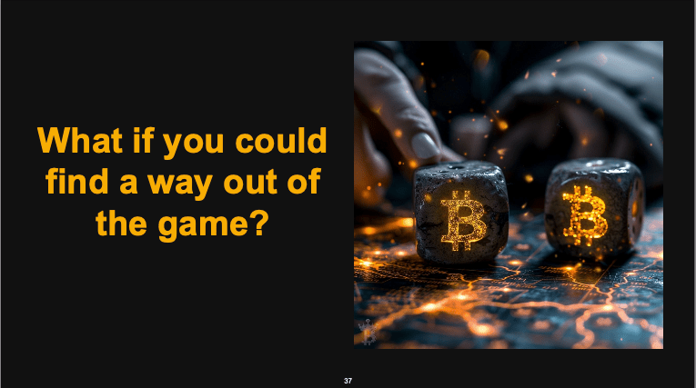 Everyone should develop a personal Bitcoin strategy tailored to their unique circumstances. The first step is to understand how Bitcoin works and consider making it your primary store of value. Focus on increasing your income, reducing expenses, and consistently converting surplus earnings into Bitcoin. You can also leverage subsidized credit by converting it into Bitcoin and repaying the debt over time. To optimize your financial strategy, invest in tax-efficient entities and jurisdictions. However, don’t make drastic changes like quitting your job suddenly; instead, steadily invest in Bitcoin and maintain your long-term focus. Given Bitcoin’s volatility, it’s crucial to avoid margin loans or leveraged trading, especially on unregulated exchanges where your assets could be at risk of liquidation.