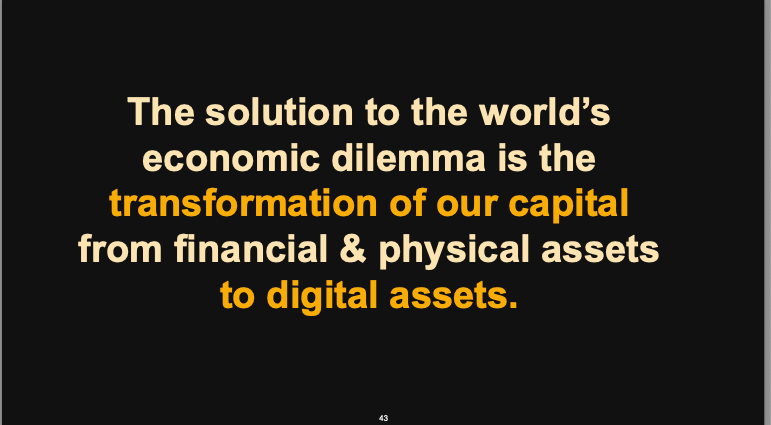 When you recognize how people use inefficient methods to store value or preserve long-term capital, the need for change becomes apparent. Michael envisions a $450 trillion revolution in how we store value.