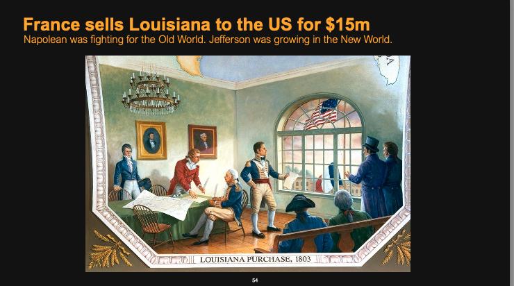 In 1803, France, under Napoleon Bonaparte, sold the vast Louisiana Territory to the United States for $15 million, a decision driven by Napoleon’s need to fund his wars in Europe. While Napoleon focused on securing power in the Old World, Thomas Jefferson, then President of the United States, seized the opportunity to expand in the New World. This purchase doubled the size of the U.S., providing immense resources and strategic advantages that would fuel its growth into a continental power. The Louisiana Purchase exemplifies how differing priorities between the Old World and the New World led to a transformative trade in history.