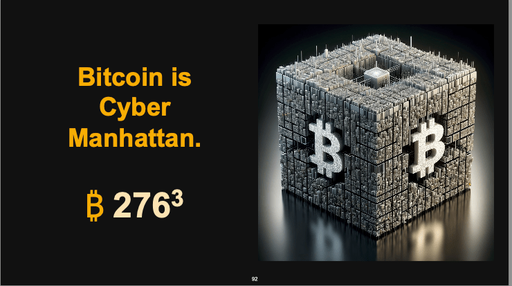 Michael Saylor likens Bitcoin to Manhattan, describing it as a “cyber Manhattan” consisting of 21 million blocks, each representing a piece of digital real estate. He draws a parallel between 2009, when Bitcoin was created, and 1626, when the Dutch purchased Manhattan. Just as Manhattan has grown from a simple trade post into a bustling metropolis filled with skyscrapers and countless businesses by 2024, Bitcoin’s ecosystem is poised to flourish. Looking 400 years into the future, the potential for businesses and innovations built on Bitcoin’s blocks is immense. With AI likely to transact in Bitcoin, its value and significance will only continue to grow over time.